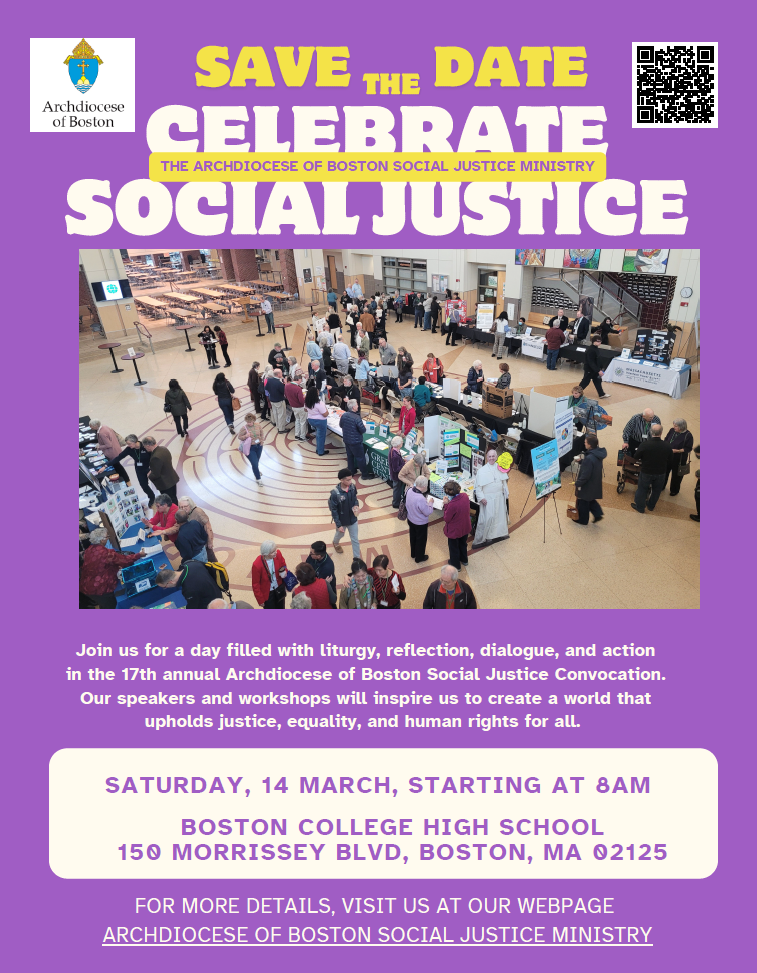 A Speakers Bureau was launched in January 2023. The objectives are to prepare a core group of people trained in Catholic Social Teaching (CST) and experienced in Social Justice to engage parishes in educational conversations and provide practical, relevant guidance and resources about CST and specific Social Justice issues such as Immigration and Refugees, Racism, Environmental Justice, Homelessness and Affordable Housing, Workers Rights, Global and Local Poverty and others, The inaugural presentation on Catholic Social Teaching by Fr. J. Bryan Hehir Secretary for Health and Social Services, was recorded and can be accessed below..